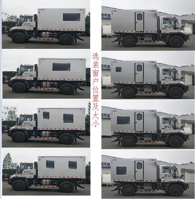 | 1.配備廚具,臥具,冰箱,液晶屏等旅居生活設(shè)施和娛樂設(shè)施;2.選裝窗戶位置及大小;3.ABS型號/生產(chǎn)廠家:ESP8.1/BOSCH;4.發(fā)動機(jī)凈功率:210kW;5.側(cè)防護(hù)裝置所用材料為Q235,與車架焊接固定,后下防護(hù)裝置材料為Q235,與車架螺栓連接,斷面尺寸(mm):120×80,離地高480mm. |