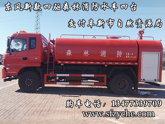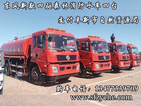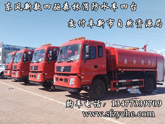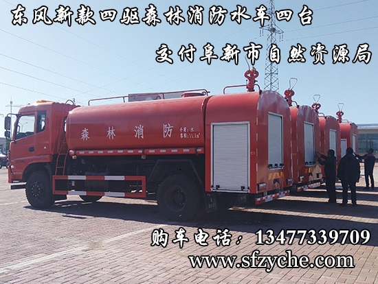 遼寧省阜新市自然資源局下屬的林業(yè)和草原局森林防火辦公室采購的東風(fēng)新款四驅(qū)森林消防水罐車具體參數(shù):東風(fēng)四驅(qū)越野森林消防水罐車_東風(fēng)11.1噸四驅(qū)消防水車_國五四驅(qū)越野森林滅火水車_東風(fēng)4×4越野SCS5183GPSEQ型四驅(qū)綠化噴灑車簡介:采用東風(fēng)EQ2180GD5DJ型越野汽車底盤,東風(fēng)153寬體駕駛室(選裝D913新款駕駛室),4×4驅(qū)動(dòng),康明斯ISB190 50國五發(fā)動(dòng)機(jī),六檔變速箱,東風(fēng)商用車橋,前驅(qū)動(dòng)橋3.8噸,后橋10噸,10.00R20輪胎,軸距4500mm,電動(dòng)玻璃,方向助力,斷氣剎,ABS。罐體采用優(yōu)質(zhì)碳鋼Q235板材,板材厚度4mm,罐體容積11.1立方,安裝夾心取力器,后置泵箱,消防栓接口左右各一個(gè),消防炮采用PS30-50D消防水炮,流量40L/S/1.0MPa 水射程:≥50m,消防泵采用常壓消防泵型號(hào):CB10/40車用消防泵,流量:40L/s,壓力:1.0MPa,駕駛室頂部安裝長條警燈帶喊話器,全車顏色橘紅,兩側(cè)噴涂白色森林消防字樣。
