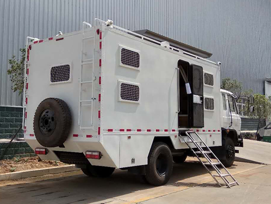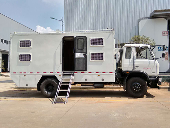 三、東風四驅(qū)越野宿營車, 4驅(qū)越野宿營車用途:適用公安、特警、公安、邊防、衛(wèi)生、交通、礦山、地質(zhì)、軍隊等部門]長期野外作業(yè)、勘察、救援、搶險、救災等宿營用,箱體空間利用大化。內(nèi)部配置:配備前儲物柜、后儲物柜、液晶電視機應急燈、頂燈、頂置空調(diào)、床墊、被褥等。選裝配備8組豪華折疊臥鋪、未鋪上下梯、安全保險帶、電源插口等,細節(jié)精致。外置燃油加熱器、頂護欄、前爬梯、隱藏抽拉梯、專用房車門、專用玻璃滑窗、警示燈等。