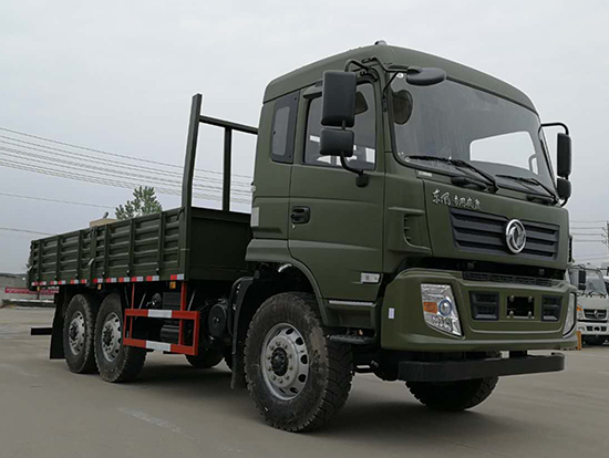 東風(fēng)新款國五六驅(qū)越野貨車配置簡介:采用東風(fēng)EQ2220GD5DJ型越野汽車底盤,東風(fēng)D530老款駕駛室/D913豪華駕駛室可供選裝,6×6驅(qū)動,康明斯ISB190 50國五發(fā)動機,六檔變速箱,標(biāo)配315/80R22.5 20PR可換為12.5R20真空越野輪胎,軸距3500+1250mm,加厚雙層大梁,電動玻璃,方向助力,斷氣剎,ABS,備胎一套,大箱長度5米,墻板高度600mm。