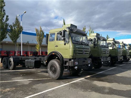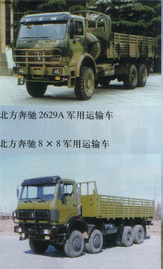 北奔7噸級(jí)4×4車(chē)型1926A軍用越野車(chē)和北奔10噸級(jí)6×6型2629A軍用越野車(chē)。
