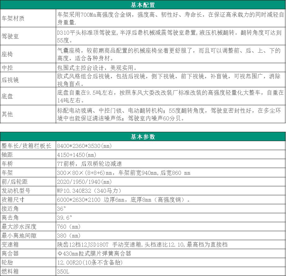 相關(guān)車型東風(fēng)大力神KC六驅(qū)自卸車配置參數(shù):DFL3251KC型六驅(qū)大力神自卸車,采用天龍大力神KC駕駛室,三段式保險(xiǎn)杠,液壓翻轉(zhuǎn),帶原廠空調(diào),濰柴國(guó)三WP12.340型340馬力發(fā)動(dòng)機(jī),法士特十二檔變速箱,軸距4500+1400mm,株齒分動(dòng)箱,北奔9噸前驅(qū)動(dòng)橋,選裝13/16噸輪減中后橋,輪減、差速鎖,大梁300mm自卸專用梁,輪胎12.00R20鋼絲胎10+1條,5.6米-6米自卸貨箱,車廂采用邊10底12mm鋼板,加裝淋水器。