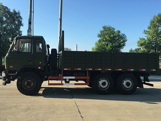 東風新款國五六驅(qū)越野貨車配置簡介:采用東風EQ2220GD5DJ型越野汽車底盤,東風D530老款駕駛室/D913豪華駕駛室可供選裝,6×6驅(qū)動,康明斯ISB190 50國五發(fā)動機,六檔變速箱,標配315/80R22.5 20PR可換為12.5R20真空越野輪胎,軸距3500+1250mm,加厚雙層大梁,電動玻璃,方向助力,斷氣剎,ABS,備胎一套,大箱長度5米,墻板高度600mm。