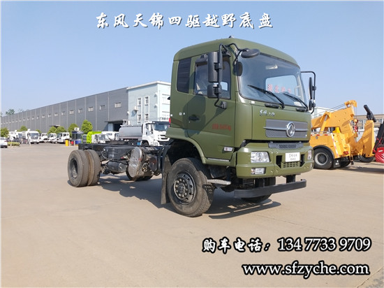 相關(guān)車型國六排放天錦(4×4)越野底盤,采用DFV2163GP6DJ型國六排放東風(fēng)天錦四驅(qū)越野底盤,東風(fēng)天錦D530一排半駕駛室,4×4驅(qū)動(dòng),康明斯B6.2NS6B210國六發(fā)動(dòng)機(jī)210馬力,最大扭矩:850N.m/1100-1700rpm,排量6.2L、韶齒手動(dòng)六檔變速箱,東風(fēng)德納車橋,前驅(qū)動(dòng)橋4.5噸,后橋10噸,10.00R20輪胎,軸距4500mm/4700mm,大梁280mm,電動(dòng)玻璃,方向助力,斷氣剎,ABS,大燈自動(dòng)調(diào)節(jié),自動(dòng)調(diào)整臂,選裝原廠空調(diào)。
