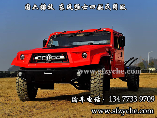 東風猛士民用版EQ2063EYY6J型長頭單排四驅越野底盤是東風越野車公司針對民用方面的首款軍轉民產品代表,其繼承東風軍用猛士的正規(guī)血統(tǒng),品質優(yōu)異,技術過硬。東風猛士民用版EQ2063EYY6J采用東風猛士M50型四驅底盤改造而成,采用東風康明斯D4.0NS6B195型國六柴油發(fā)動機,195馬力 ,排量4L帶增壓,最大扭矩600/1100-2200(N.m/r/min);猛士5擋軍用手動變速箱;分動箱為四輪全時驅動帶高低擋;軸距3800mm;整備質量3540kg;核定載質量2460kg;輪胎采用305/80R18MPT全鋼子午線輪胎,帶自動中央充放氣系統(tǒng);整車總質量6000kg,國六B排放全國可上黃牌,整車尺寸:5320*2310*1950mm;最小離地間隙388mm,最大垂直越障400mm,通過性強,適應高海拔極寒極熱地區(qū),全國暢行無阻,最高車速可達120km/h。