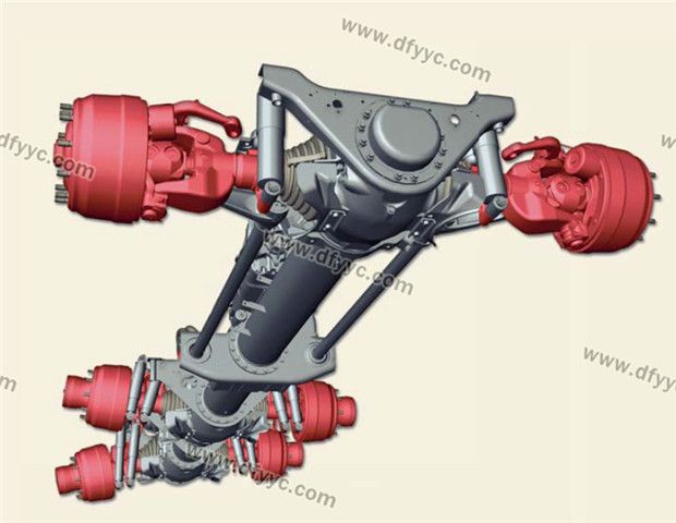 斷開式車橋是太脫拉另一與眾不同之處,這幫助太脫拉這樣的重型卡車實現(xiàn)了全輪獨立懸架,允許車輪有較大的跳動空間,大大提高了整車在極端路況下的通過能力,尤其是通過臺階、壕溝、扭曲路的能力。太脫拉在空載的時候車輪是呈內(nèi)八字的大外傾角姿態(tài),行駛的時候只有輪胎的外側(cè)胎肩接觸地面,而滿載的時候卻是呈負外傾的姿態(tài),這因為其斷開式車橋?qū)嶋H上是單橫擺臂的結(jié)構(gòu)所造成的,只要使用特制的輪胎,其輪胎磨損情況可以有效的改善。